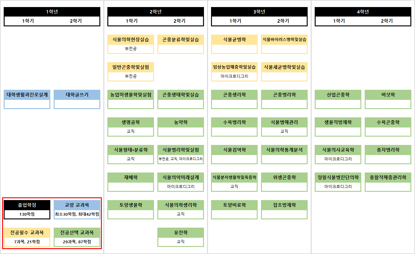 식물의학과(농생물학과) 교과 이수 체계도 안내